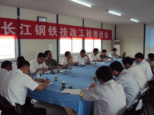 项目经理吴民介绍了工程进展的情况。机电公司党委书记周美初就机电管安装阶段的资源组织和重大节点的安排在会上做了通报。公司总经理助理王青山会上对制约整个工程进展的土建工程的重点部位提出了具体要求。公司副总经理喻世功在会上强调,必须确保长江钢铁技改项目工程的总目标。同时,他对工程的安全质量、经营管理等方面的工作作了新的部署。中冶华天和长江钢铁技改工程指挥部的负责人也对下一步工程的施工管理提出了建设性意见。