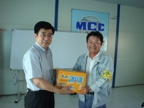 康董事长说,我代表公司党委、董事会、经营层全体领导对大家在高温下顶着烈日酷暑坚守岗位表示敬意并亲切问候,希望大家一定要注意身体,防止中暑,在高温条件下确保安全生产。