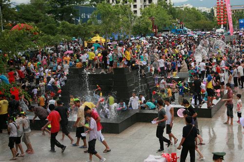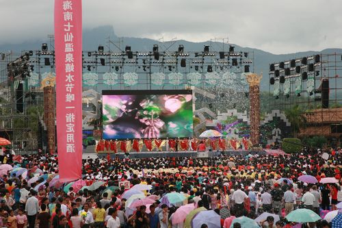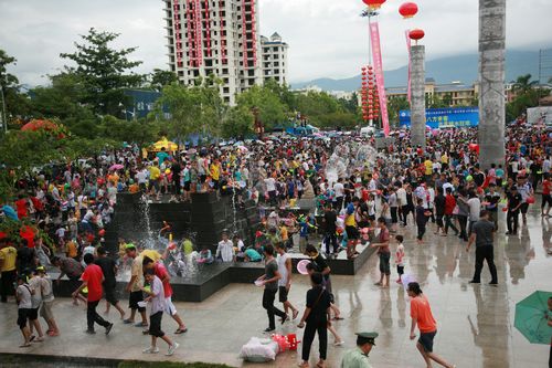 凤凰卫视著名主持人吴小莉、中央电视台著名主持人朱军共同主持了开幕式。阎维文、谭晶、陈思思、庞龙、丁晓红、糖糖等著名歌手为保亭各族人民献唱了《母亲》、《举杯吧朋友》、《世界》、《和谐大家园》、《美丽的日子》等优美歌曲。广场上,人们载歌载舞,纷纷拿起各种水枪以及大小各异的水盆,相互泼水嬉戏。祈求风调雨顺,幸福安康。