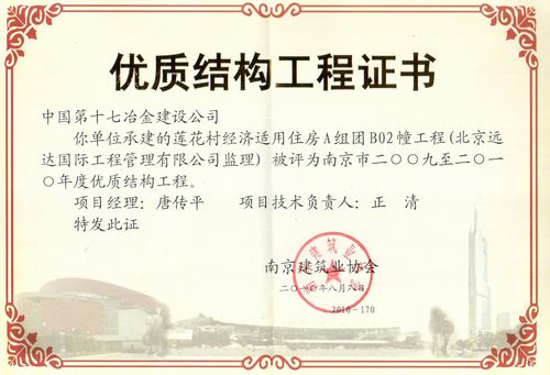 南京莲花村经济适用房B02栋工程被评为“优质结构工程”