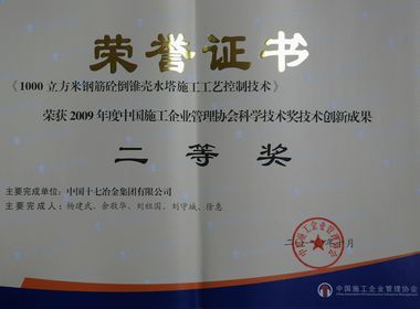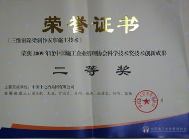国内工程建设行业最高科技奖——中国施工企业管理协会科学技术奖日前揭晓,十七冶集团共获4个奖项:十七冶集团公司荣获科学技术奖技术创新先进企业;城建工程技术公司研制完成的“1000m3钢筋砼倒锥壳水塔施工工艺控制技术”和路桥工程技术公司研制完成的“三维钢箱梁制作安装施工技术”荣获技术创新成果二等奖;罗东荣获技术创新先进个人。
