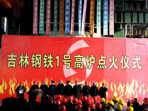 1129上午,吉林建龙钢铁有限公司炼铁项目部在一号高炉平台举行隆重的点火仪式。十七冶吉钢项目部经理时华钢代表建设单位作了发言。吉钢公司、吉钢炼铁项目部、设计院、监理公司、参建单位和保修单位的领导共同携手为一号高炉点火。