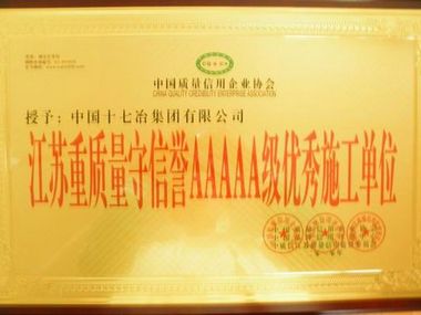 日前,中国质量信用企业协会、中国品牌信用评价中心、中质信江苏质量信用监督委员会联合授予中国十七冶集团公司 “江苏重质量守信誉5A级优秀施工单位”荣誉称号,公司同时成为“中国质量信用企业协会副会长单位”。
