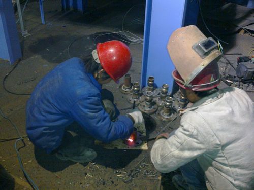 太钢项目部利用节日抓重点,集中20多名员工在太钢加工厂冶金除尘制砖系统工程上配合外方(德国)进行设备试车。