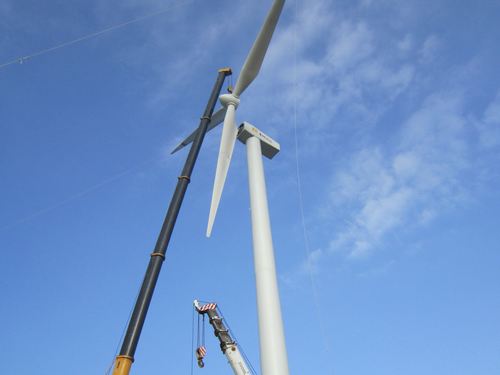 413下午,随着最后一台风机叶轮的吊装完成,标志着公司广东阳西风电项目胜利完成吊装工作。