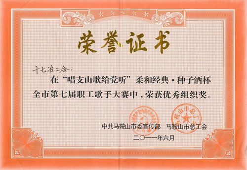 622,在马鞍山市委宣传部、市总工会联合主办的唱支山歌给党听暨全市第七届职工歌手大奖赛上,我公司选手姚莉获通俗组第一名,公司工会获优秀组织奖。