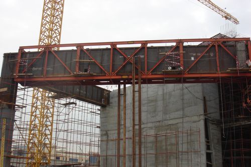 1月31日凌晨3点,由中国十七冶海外事业本部承建的科威特教育部大楼钢结构工程特大型箱型钢梁顺利完成吊装,标志该工程主体箱型梁柱全部完成吊装工作。 该钢梁为教育部大楼门厅主梁,由两根箱型梁组成L型结构,支撑整个塔楼一端。其中短梁跨度总长达18.279米、截面尺寸为1.2米宽×2.4米高、重78吨,长梁跨度总长达26.678米、截面尺寸为1.5米宽×2.8米高、重128吨。其远离基坑,最远吊装半径达到32米,钢梁吊装成了教育部大楼钢结构工程中的一个技术难点。 项目部利用现有资源,精心编制专项施工方案,在甲方、顾问公司的协调和大力支持下,确保吊装成功,为后续钢结构工程的顺利进行奠定了基础。