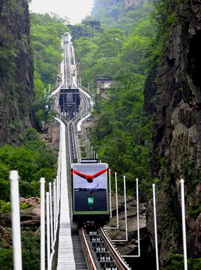 黄山西海大峡谷观光缆车位于黄山梦幻景区西海大峡谷内,系单线往复式缆车。上站位于石床峰东北角,海拔为1706;下站位于峡谷底游览步道的西侧,海拔为1209。缆车运行长度892m,高差497m,最高运行速度8/秒,缆车容量60+1人,单向运力800/小时。该观光缆车运行之后,黄山西大门随之真正打开,可大大缓解旅游旺季黄山北海等热点景区人流量大的压力。