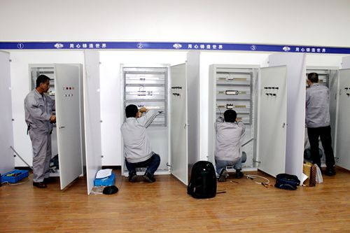 在十七冶职业技能鉴定实训基地,秦建媛调研员一行认真观看了工程电气设备安装调试工技师和高级技师申报人员的实操考评以及十七冶职业技能鉴定所制作的《发挥企业资源优势,大力培育高技能人才》的专题片,并向担任考评员的李跃宁大师工作室成员询问有关考评情况。