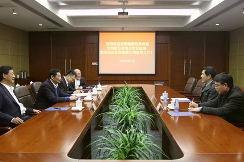 3月16日下午,中国十七冶集团董事长、党委书记喻世功在公司总部会见了来访的宝山钢铁股份有限公司总经理戴志浩一行。