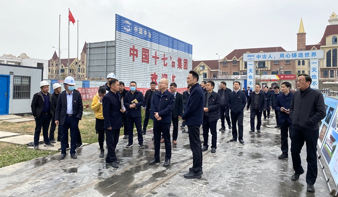 3月19日下午,河南省鄢陵县委书记李东岭一行到中国十七冶集团房屋分公司鄢陵市民中心项目检查指导工作,鄢陵县各主要政府机关负责人参加检查指导工作。