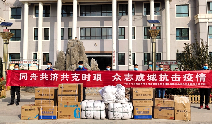 G30高速项目四个分部分处兰州市榆中县和皋兰县,疫情发生后,两县之间通道暂时关闭管制。项目总包部第一时间建立疫情期间的协调机制,统筹调配资源,协作抗疫。同时,针对项目沿线跨2县6乡镇20余村,各分部第一时间参与到沿线辖区的防疫工作中,帮助辖区政府在防疫检查点搭建工作人员休息彩板房,并多次向沿线政府及村庄送上防疫物资和生活物资。