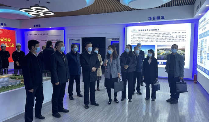 应宏锋局长参观了项目5G展览厅,详细了解了项目建设进度、功能布局等情况,听取了相关单位关于国家医学中心筹备落地等情况的汇报,对当前工程进展及项目管理工作给予了充分肯定与赞许。应宏锋局长要求,各参建单位要在项目管理方面更进一步,采取针对性措施,进一步优化工程管理体系,加快提升承建医院工程质量创优水平,确保各项创建指标达标达优;进一步凝聚各方工作合力,压实各方责任,学习借鉴先进做法,更好更快推进各项建设工作,确保工程如期交付使用。