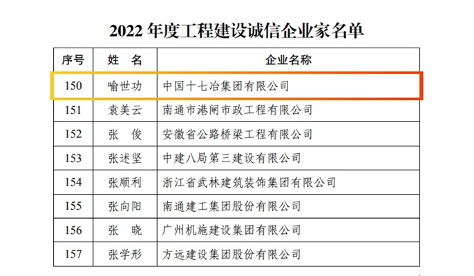 百尺竿头须进步,千里足下贵持恒。中国十七冶集团本年度还荣获了由中国建筑业协会评定的“信用AAA等级企业”称号。公司将以此为契机,坚持弘扬诚信文化,持续深入推进“合规管理提升年”行动,提升信用配置资源、信用化解风险、信用培育品牌的能力,进一步完善诚信建设长效机制,以实际行动落实好党的二十大关于推进诚信建设的新部署。