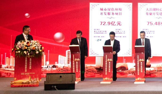 1月10日下午,黄石市举行2023年黄石市招商引资开门红集中签约活动,黄石市委书记郄英才,市委副书记、市长吴之凌,市委常委、统战部部长俞远汉,市委常委、市委秘书长朱宏伟,副市长郭波,市政府秘书长柯月明等出席活动。中国十七冶集团总经理、党委副书记刘安义,副总经理张杰应邀出席。刘安义总经理代表公司进行了签约。