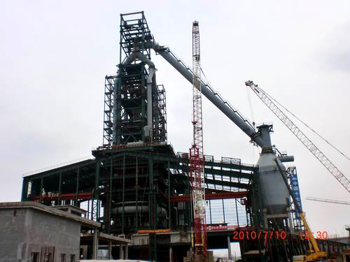 吉钢1号高炉下降管的吊装是高炉炉体结构安装的重大节点,也是高炉本体大型构件吊装的最后一吊,吊装的下降管总长55m,重约97t。为了本次施工,机装二处专门组织吊装小组,克服空间就位角度小、吊装场地狭窄,吊装难度大等困难,经过理论数据精密计算与现场实际条件双重结合,准确无误地完成了下降管的吊装和拼接,受到业主的好评,同时也为1号高炉如期竣工打下了坚实的基础。