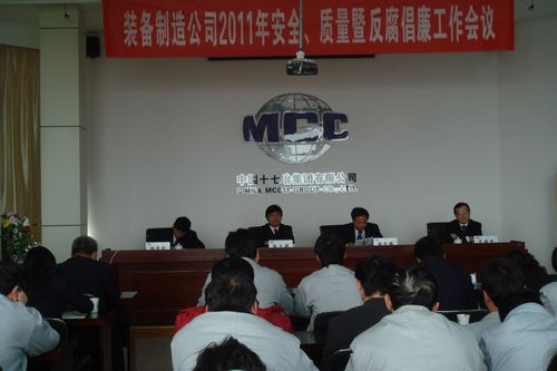 217下午,装备制造公司召开了2011年安全、质量管理暨反腐倡廉工作会议。公司领导班子成员、机关、各项目部及厂部管理人员共50余人参加了会议。会议传达了集团公司安全、质量管理暨反腐倡廉工作大会精神,以及王建国董事长在此次大会和集团公司市场工作会议上的重要讲话精神。公司经理、党委书记胡生春结合本公司实际状况,就如何贯彻集团公司的会议精神,提出了公司应着力抓好的四个方面工作:一是深刻领会本次会议精神,全面深入推进企业文化建设,加速员工思想观念的转变;二是强化对相关法律法规和管理制度的教育培训,全面提高员工安全、质量管理意识、廉政意识和制度执行力;三是强化安全质量生产责任,加强安全质量管控力度;四是强化党组织建设工作,加强党风廉政建设,营造“风清气正”的企业氛围。