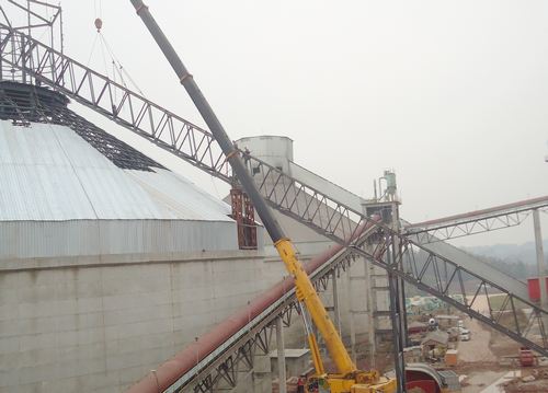 达州海螺二期生产线熟料库斜拉链顺利吊装