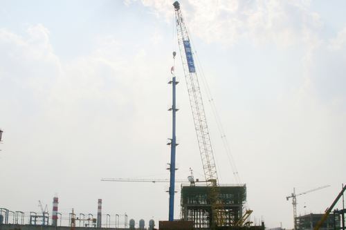 为了此次吊装顺利完成,项目部组织相关人员召开专题会,制定了科学的吊装方案,进行安全技术交底。在吊装过程中,严格按照吊装方案和施工程序施工,加强现场协调与控制。第一根钢柱的一次吊装成功,为该工程的稳步推进开了一个好头,为确保泰钢烧结工程8月份投产赢得了时间。