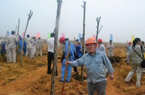 这项活动是由宝钢集团发起的,他们特意选择三年即可结果的果树,通过以与各参战单位共同植树的方式,预示着经过全体参建人员的努力,湛江钢铁工程三年后初步出钢的坚定信心。