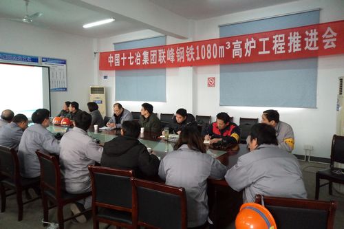 16上午,联峰钢铁3#1080m3高炉项目召开工程推进会。冶金工程技术公司副经理周金龙、韩斯明,项目监管部、项目部以及施工单位负责人参加了会议。
