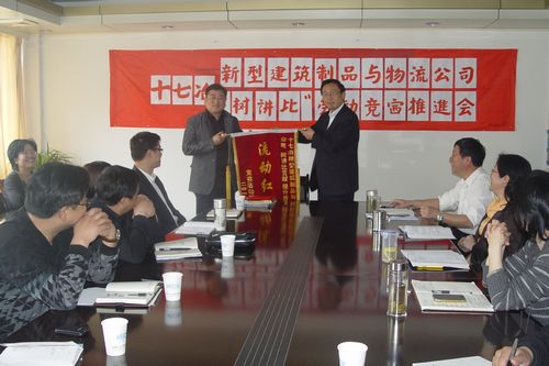 新型建筑制品与物流公司经理孟祥春向获奖部门物流部颁发了劳动竞赛的流动红旗,并强调,通过劳动竞赛开展,赛观念转变,要坚定发展信心,做大产业规模;赛经营目标按期完成,各部门要保质、保量、高效完成主要经营指标和工作任务;赛公道正派、求真务实的工作作风。各部门要紧紧抓住二季度生产经营的黄金时间,大干快上、奋勇争先、敢超进位,为公司发展做出更大贡献。