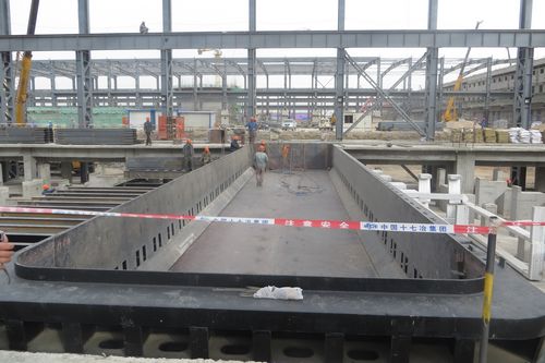 4月15日上午,经过近两个月的紧张施工和准备,由十七冶甘肃分公司承建的酒钢2×45万吨电解铝主厂房制作安装工程一区首台电解槽槽壳顺利进入车间并组对安装。