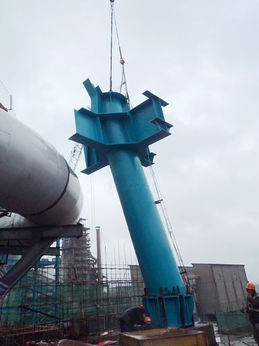 该高炉本体框架柱设计为钢管混凝土结构,下框架柱钢管规格为Φ1200mm*25mm,上框架柱钢管规格为Φ800mm*25mm。此次吊装的下框架柱安装标高12.5m,重15t。项目部认真开展“树正气、讲责任、比贡献”主题劳动竞赛活动,精心部署,合理安排构件进场,克服施工场地狭小等困难,顺利完成了该节点任务。