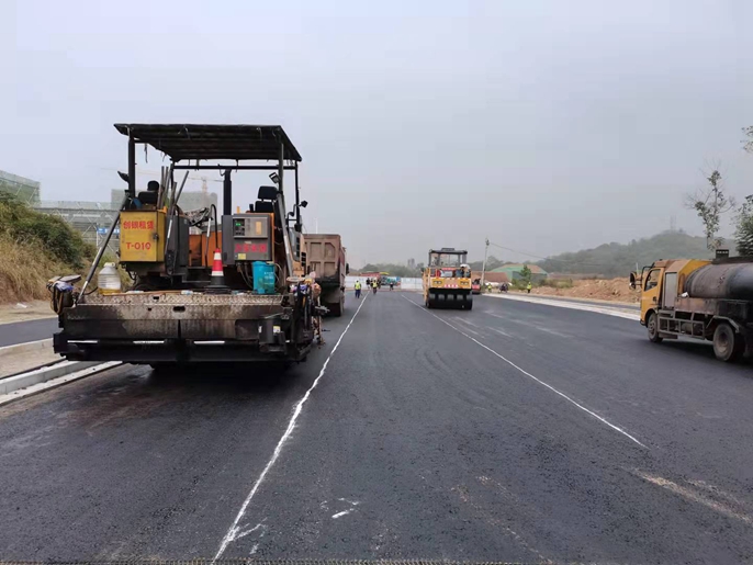 该项目位于马鞍山市经济技术开发区,规划为四条城市次干路,分别为小山路、丁山路、黄山路以及红星南门支路,道路总长度2800米,道路两侧主要为居民用地,当前项目正处于绿化阶段。此次摊铺完成的银塘路为黄山路中的一部分,摊铺长度138.103米,规划道路红线宽30米,设计速度40千米/时。此次摊铺的完成打通了银塘路与黄山路交叉口衔接段的“断头路”,提升了马鞍山城市道路网络的运输交通,进一步完善了支路网,提升了城市形象,解决了周边居民出行难题,也为周边施工建设的高效运转注入了活力。