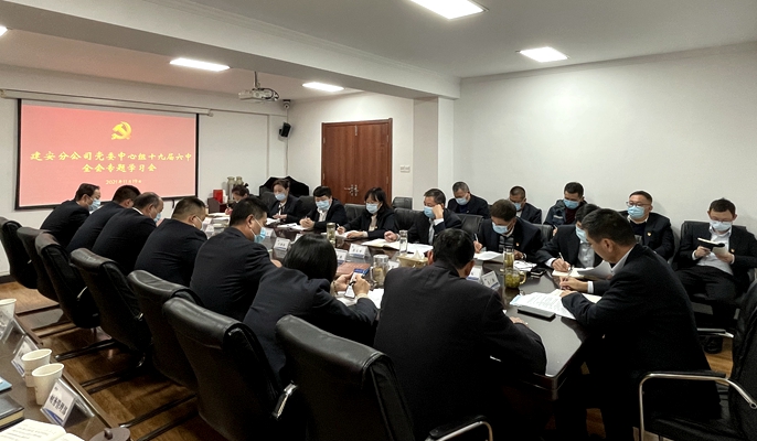 11月19日,建安分公司党委中心组学习研讨十九届六中全会精神,分公司领导班子成员,各实体、机关部门负责人,在马项目经理、党支部书记等参加学习。