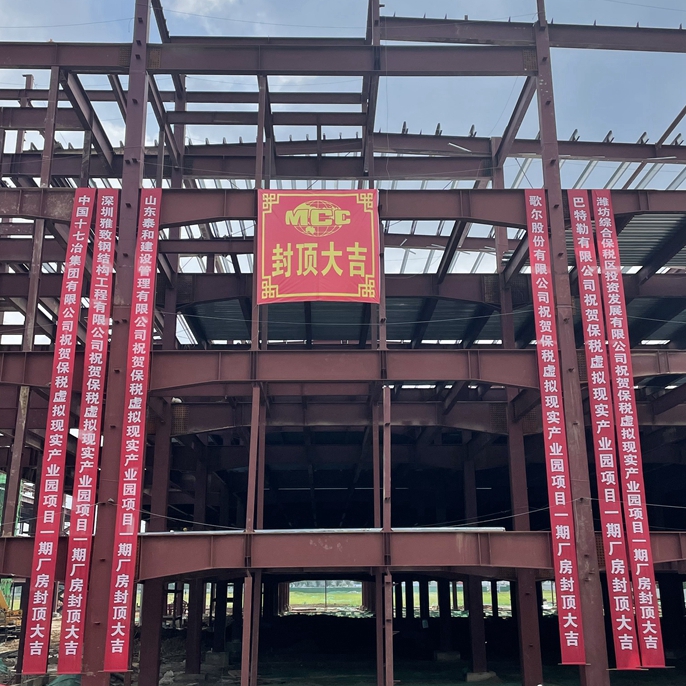 山东潍坊保税虚拟现实产业园项目主体钢结构封顶