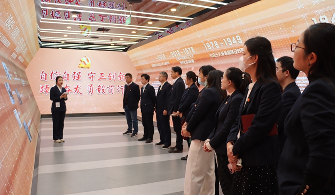 步入展厅,大家走进了一条建党百年历史的“时光隧道”,在讲解员的详细讲解下,党员们在学习看齐先进模范人物事迹、观看优秀电视教育片的过程中,回顾了中国共产党党史、马鞍山党史和组织工作发展史,深刻领会了习近平新时代中国特色社会主义思想,认识到新时代十年的伟大变革在党史、新中国史、改革开放史、社会主义发展史、中华民族发展史上的里程碑式的重要意义。全景式、沉浸式的党史学习参与体验,也让全体党员对党的光辉历程有了更深刻的理解。参观学习结束后,全体党员重温入党誓词,大家高举右拳,面向鲜红的党旗,目光坚定,庄严宣誓,用字字千钧的誓言表达了对党的无限忠诚,更加坚定了心中的理想信念。