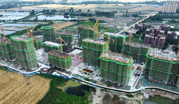 马鞍山郑蒲港镇淮八期安置房首栋封顶