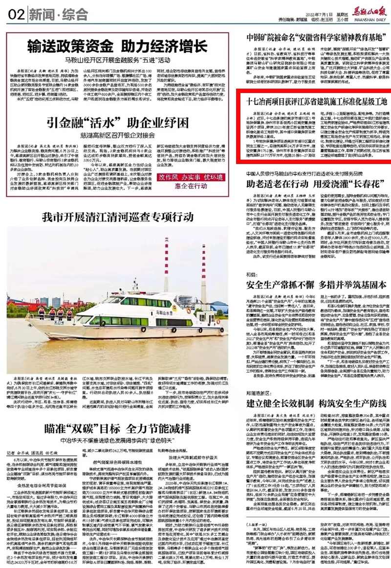 《马鞍山日报》:十七冶两项目获评江苏省建筑施工标准化星级工地