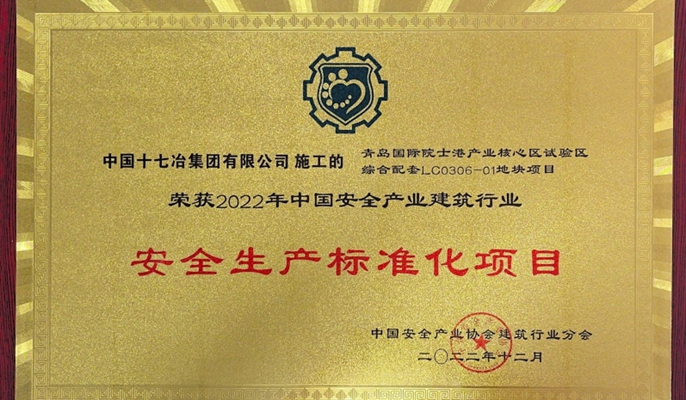 1月3日,中国十七冶集团收到中国安全产业协会建筑行业分会表彰文件和奖牌,公司获评“2022年安全生产标准化(建筑行业)企业(单位)”称号,山东分公司潍坊林语观澜项目、青岛分公司青岛国际院士港项目获评“2022年安全生产标准化(建筑行业)项目”称号,王永吉获“2022年安全生产标准化(建筑行业)带头人”称号。