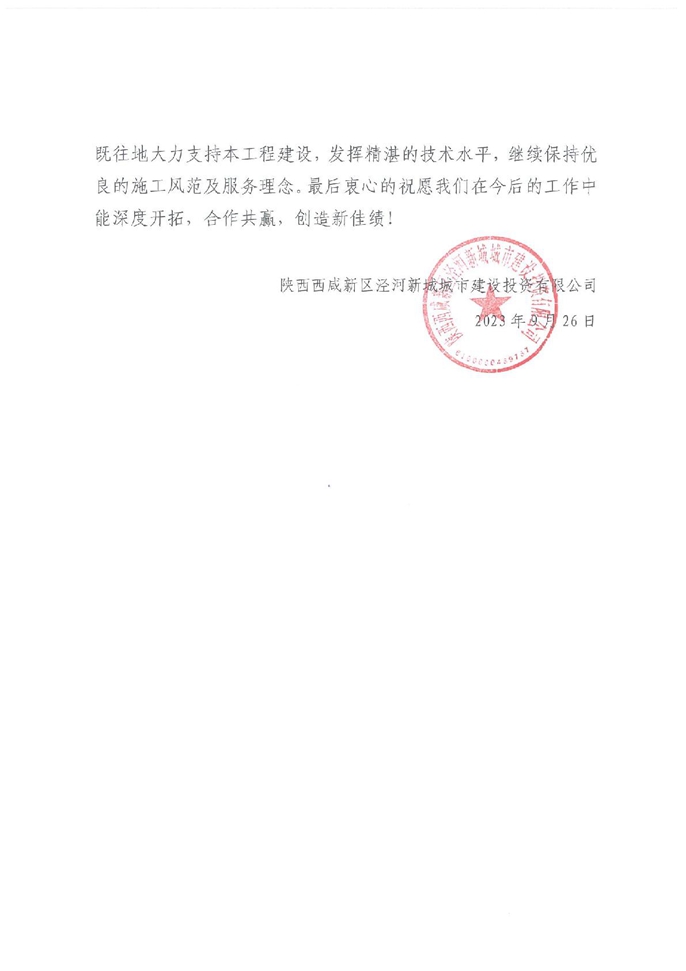 十一前夕,陕西西咸新区泾河新城城市建设投资有限公司向中国十七冶集团致表扬信,对陕西分公司泾河新城智谷科创园项目团队克服困难,率先完成既定节点表示肯定与感谢。