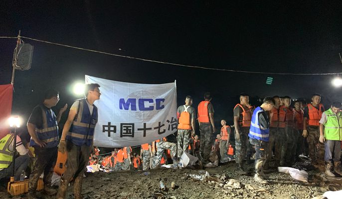 面对沈巷镇发出的救援需求,安徽中医药高专后勤综合楼项目部迅速集结救援突击队赶赴现场。当突击队到达圩堤后,大家撸起袖子就挥锹铲土装袋传递到堤线。由于降雨之后的道路上泥泞,每挪动一步都非常艰难,大家每下一锹都极为吃劲,但突击队的队员们任劳任怨没有一句怨言,只为了能尽快修好圩堤,保证老乡的生命财产安全。下午6点,来自江苏徐州军区的人民子弟兵也赶到现场支援战斗,突击队同人民子弟兵并肩作战,在夜色中喊着号子,争分夺秒修筑圩堤,终于在夜里11点修筑完成。一天下来,突击队装运石子3000袋,修筑加固损坏圩堤500米。