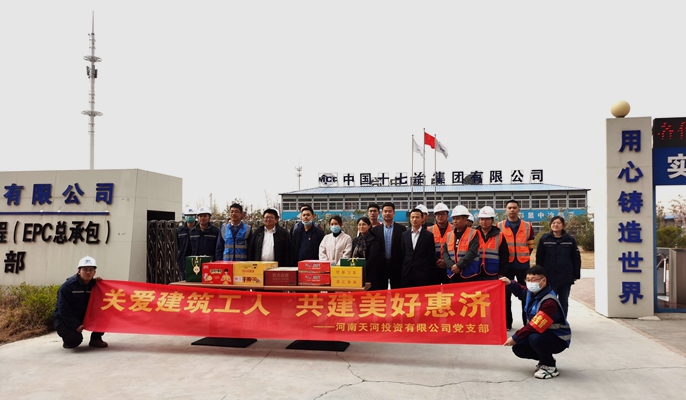 3月17日,河南天河投资有限公司总经理马力同惠济区新型城镇化相关人员来到中国十七冶集团承建的郑州市惠济区双桥(东)安置房工程(EPC总承包)项目经理部进行慰问。