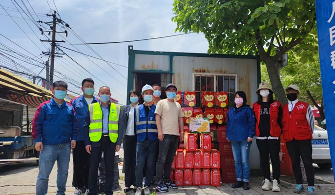 在疫情防控服务点,项目团队一行向坚守在疫情防控一线的工作人员送去牛奶、水果、饼干、矿泉水等慰问品,对五一小长假期间奋战在一线的工作人员表达崇高敬意,表示将全力配合社区防控工作,做好施工防疫两不误,两手抓,确保安全生产。