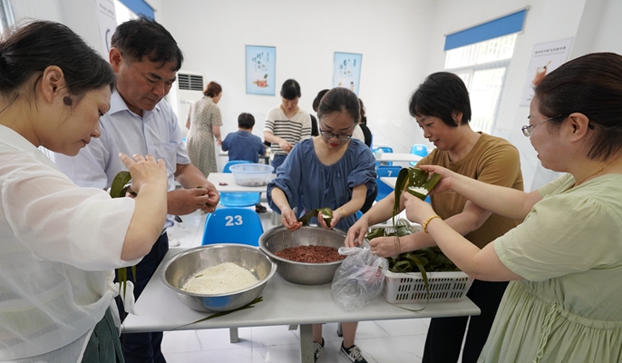 活动现场,桌上摆满了糯米、粽叶、红豆、蜜枣等材料,技术娴熟的老手填米、裹粽、绑线一气呵成,新手们尝试填米、裹粽,最后露馅,惹得围观的人开怀大笑。老手们充分发挥“传帮带”精神,手把手地教新手学包粽子,大家都包得不亦乐乎,经过1个多小时的努力,形状饱满、形式多样,漂亮诱人的粽子呈现在眼前,活动现场充满了浓浓的端午节日氛围。在随后展开的制作香囊环节,职工们不时彼此请教,相互切磋,从穿针引线、放艾草,到缝合、系绳,一气呵成,一个个精致美观、艾香四溢的香囊既增添了节日的气氛,又有驱虫的功效。