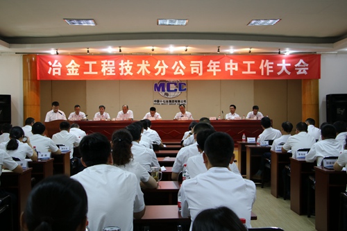 7月21日上午,冶金工程技术分公司召开2019年中工作大会,公司领导班子成员、项目经理、中心主任、机关各部室主管级以上管理人员等近60人参加大会。