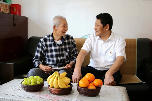 在两位老人家中,喻世功董事长详细询问了两位老人的健康和生活状况,并一再叮嘱他们要注意身体健康。喻世功董事长代表公司对两位劳模的先进事迹表达了深深的敬仰之情,并表示,能当选全国劳模不容易,你们是我们时代的劳动英雄,为国家、为公司的建设都做出了重大的贡献,70年的辉煌有两位的一份功劳。同时也向两位劳模分享了十七冶飞速发展的现状,并代表公司祝愿他们身体健康,阖家幸福。两位老人对工会组织和十七冶的关心表示十分感谢。