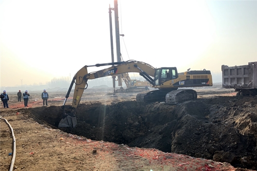 12月9日上午9点18分,徐钢三期炼钢连铸工程旋流池深基坑顺利开挖。