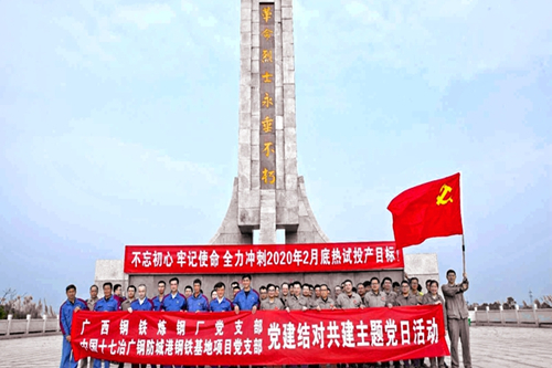 当天,防城港项目党支部与业主广西钢铁炼钢厂党支部在防城港港口区光坡镇开展了“不忘初心,牢记使命”主题党日活动庆祝新年的到来。活动开始全体党员在“三光企”革命武装起义纪念碑前重温入党誓词,随后前往海上党支部开展支部交流学习。学习会上,党员干部表示接下来将以更加清晰的目标认识和饱满的工作热情,全力冲刺2020年2月底热试投产目标。