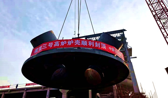 1月11日上午,由中国十七冶集团有限公司冶金工程技术分公司承建的河北钢铁集团乐亭钢铁项目3#高炉炉壳顺利封顶。