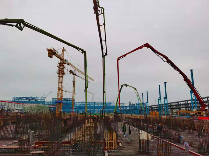 1月17日上午,由中国十七冶集团有限公司冶金工程技术分公司承建的防城港钢铁基地项目(一期)板材系统工程精轧大筏板设备基础开始浇筑。