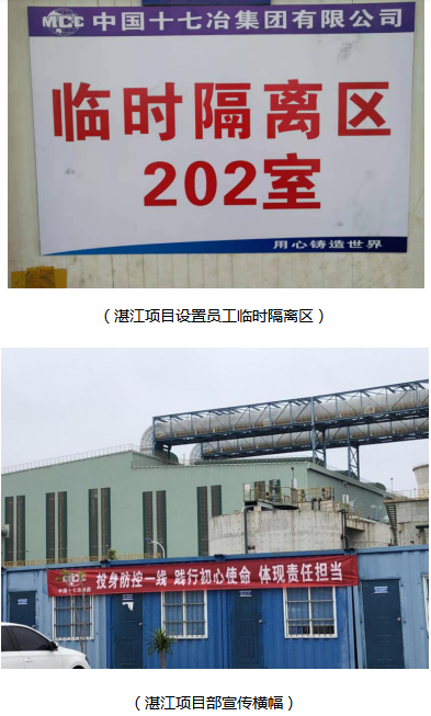 为第一时间确保员工生命健康与安全,疫情爆发初期,湛江钢铁项目负责人贾正国和党支部书记董伟便先后赶往湛江施工一线。作为多年党员,即使面对疫情爆发,他们仍旧迎“疫”而上毫不畏惧,以身作则,率先垂范,通过广泛宣传,积极组织动员在岗党员在办公小临、八标大临生活区、施工现场等区域悬挂疫情防控宣传横幅;设置临时隔离区,配备体温测量仪、消毒液、口罩等防疫物资加强区域消毒和人员管控,践行初心使命,体现责任担当,时刻为保障员工生命健康保驾护航,切实有效的开展了疫情防控工作,为后续复工工作打下坚实基础。