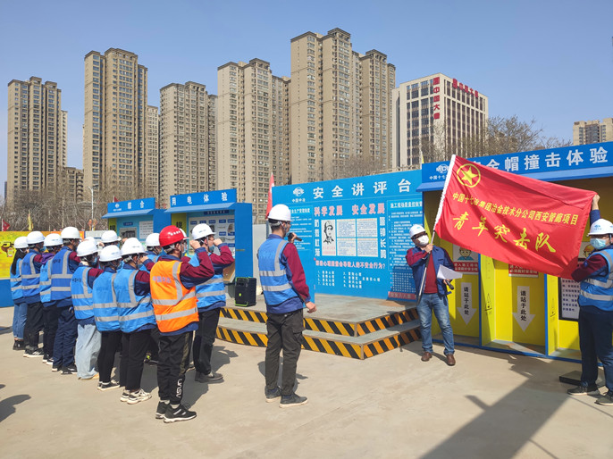 仪式期间,项目经理江龙首先汇报当前西安管廊项目面对的严峻考验,总结项目部近期复工复产的进展情况,对西安管廊项目接下来一百天的大干热潮充满信心,接着冶金公司团委书记李赛赛发表讲话,宣布青年突击队成立,并由冶金分公司党委书记陈鑫慧为青年突击队授旗。