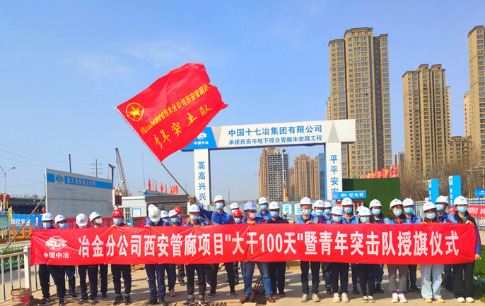 为了传达中国十七冶集团“大干一百天”动员大会的会议精神,进一步激励广大团员青年在工作中充分发挥主力军和突击队的作用。冶金公司西安管廊项目部始终坚持“一手抓疫情防控、一手抓复工复产”,强化疫情防控和安全生产,全面推动工程复工复产。3月18日下午,在西安管廊项目朱宏路现场举行“冶金公司西安管廊青年突击队”成立及授旗仪式。冶金公司党委书记陈鑫慧、团委书记李赛赛、项目部管理人员及全体青年突击队员参加了此次授旗仪式。