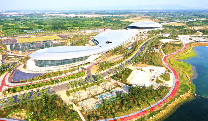 滁州高教科创城文体中心工程属滁州市重点项目,位于滁州市南谯新区乌衣镇内,区域位置位优越,交通便捷,占地面积为23973平米,工程采用架加钢屋盖的结构形式,造型为祥云形状,象征的人与自然、人与社会、建筑与环境三方面的和谐。文体中心建成以来,已成功举办了多场比赛,得到了业主及举办方的认可与肯定。作为文体中心最重要的手球馆,是整个项目的核心。中国手球协会的专家表示,滁州国际手球馆的建设标准,在国内众多手球馆中名列前茅,在亚洲地区位居前列。项目荣获“安徽省建设工程施工质量标准化示范工程”、“中国钢结构金奖”、中国建筑防水协会“金禹奖”金奖等荣誉。